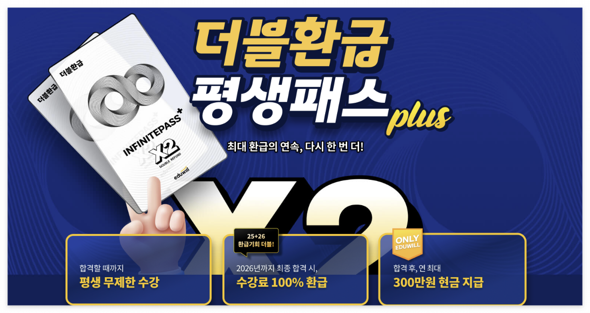 매해(?) 이름이 조금씩 바뀌는 에듀윌 상품 중 하나인데 키워드로 요약하면 환급과 평생인 상품이 있습니다.